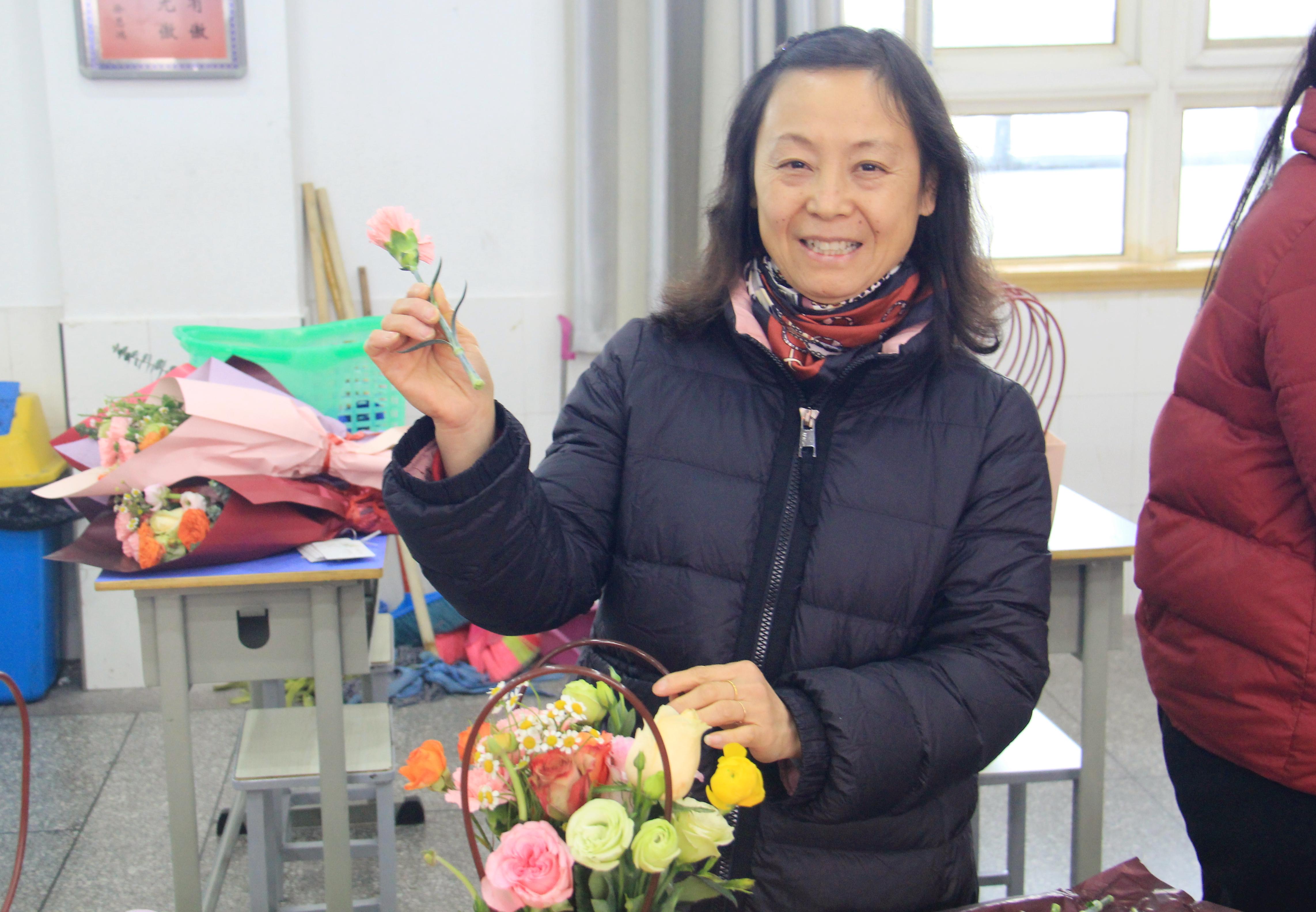 经过近一个小时的创作,一件件生机盎然的插花作品陆续完成。教师们纷纷举起花篮合影留念,并将作品带回装点办公室或赠予同事,传递节日的祝福。