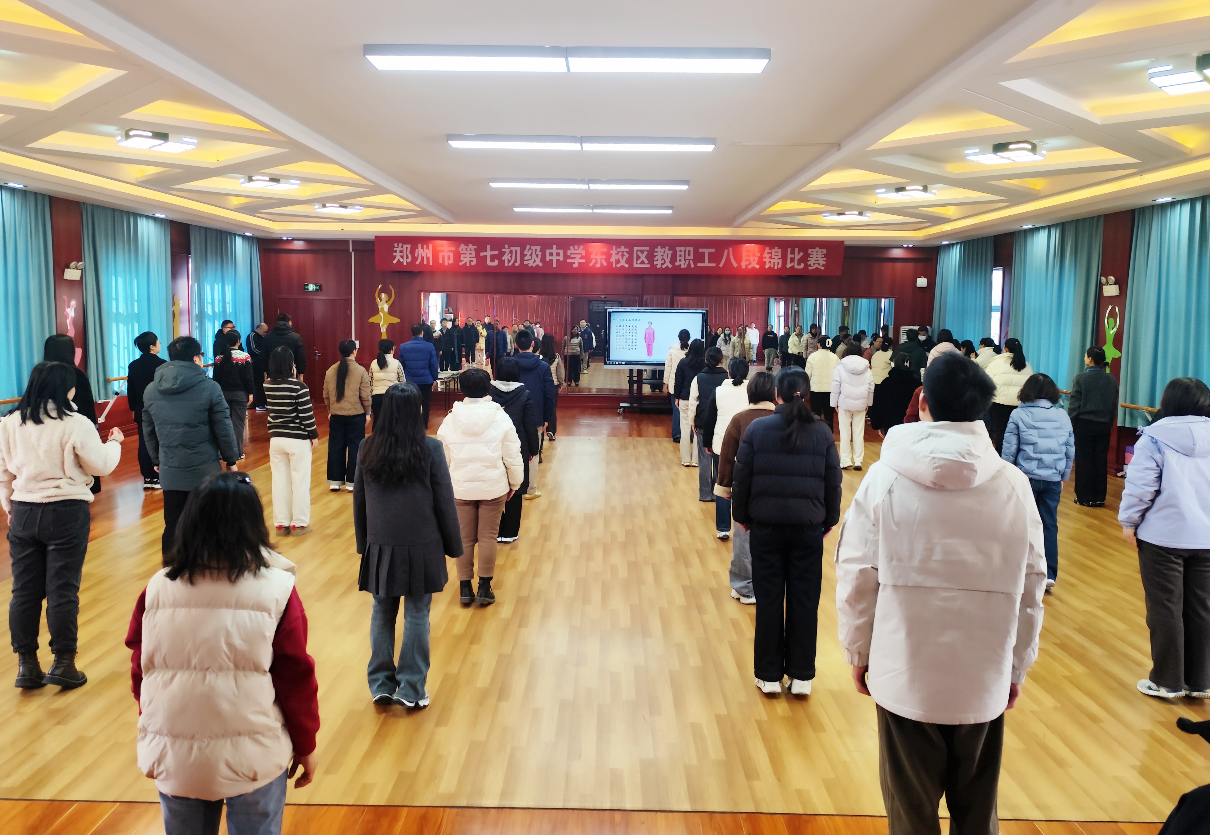 为促进我校教职工身心健康,激发广大教职工参与体育锻炼的热情,12月17日,由校工会主办的教职工八段锦比赛于在郑州市第七初级中学东校区举行。