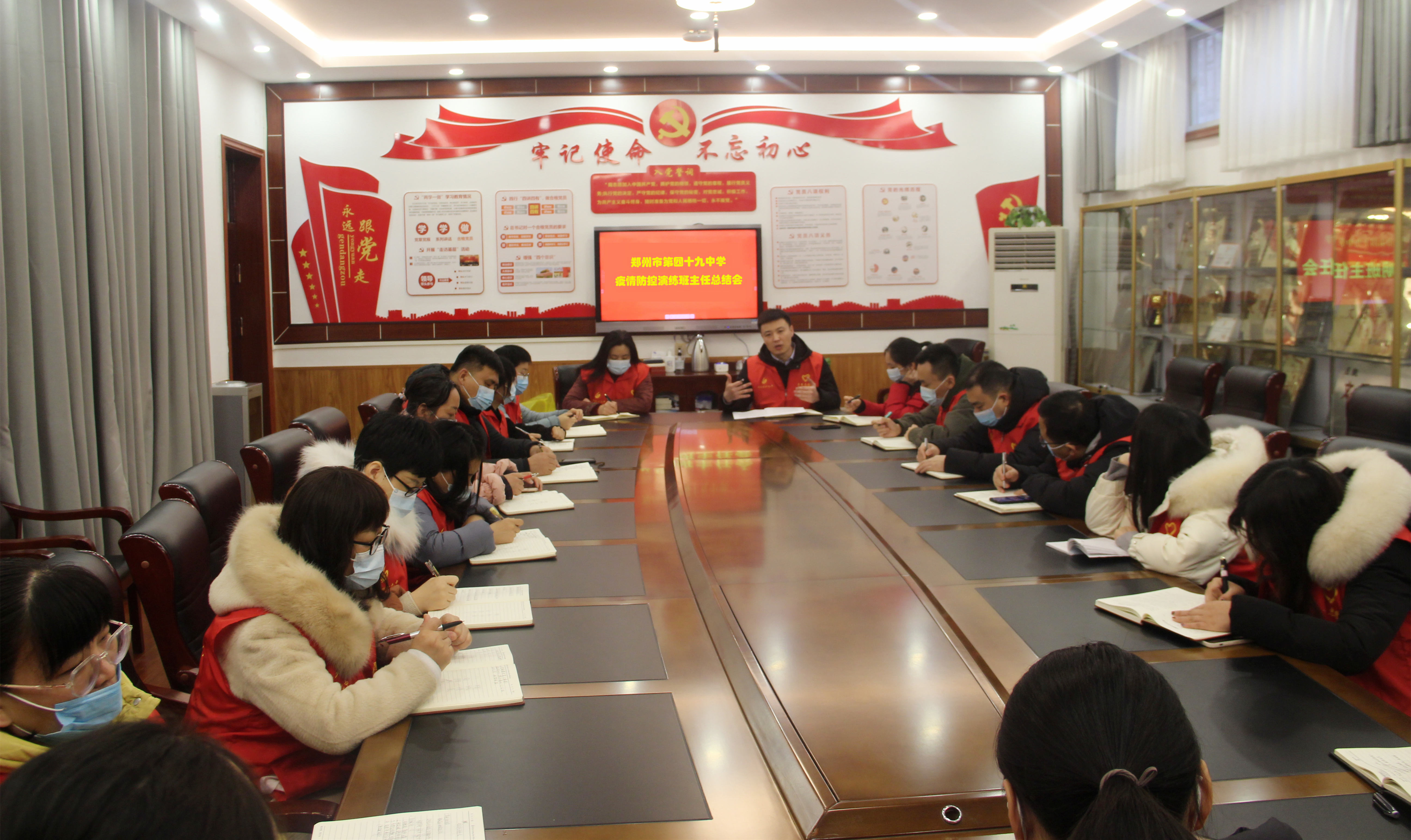 为进一步做好疫情防控工作,确保2022年春季开学返校安全有序,2月14日上午,郑州49中进行返校开学疫情防控工作演练。全体行政人员、班主任及中层以上干部参加演练。