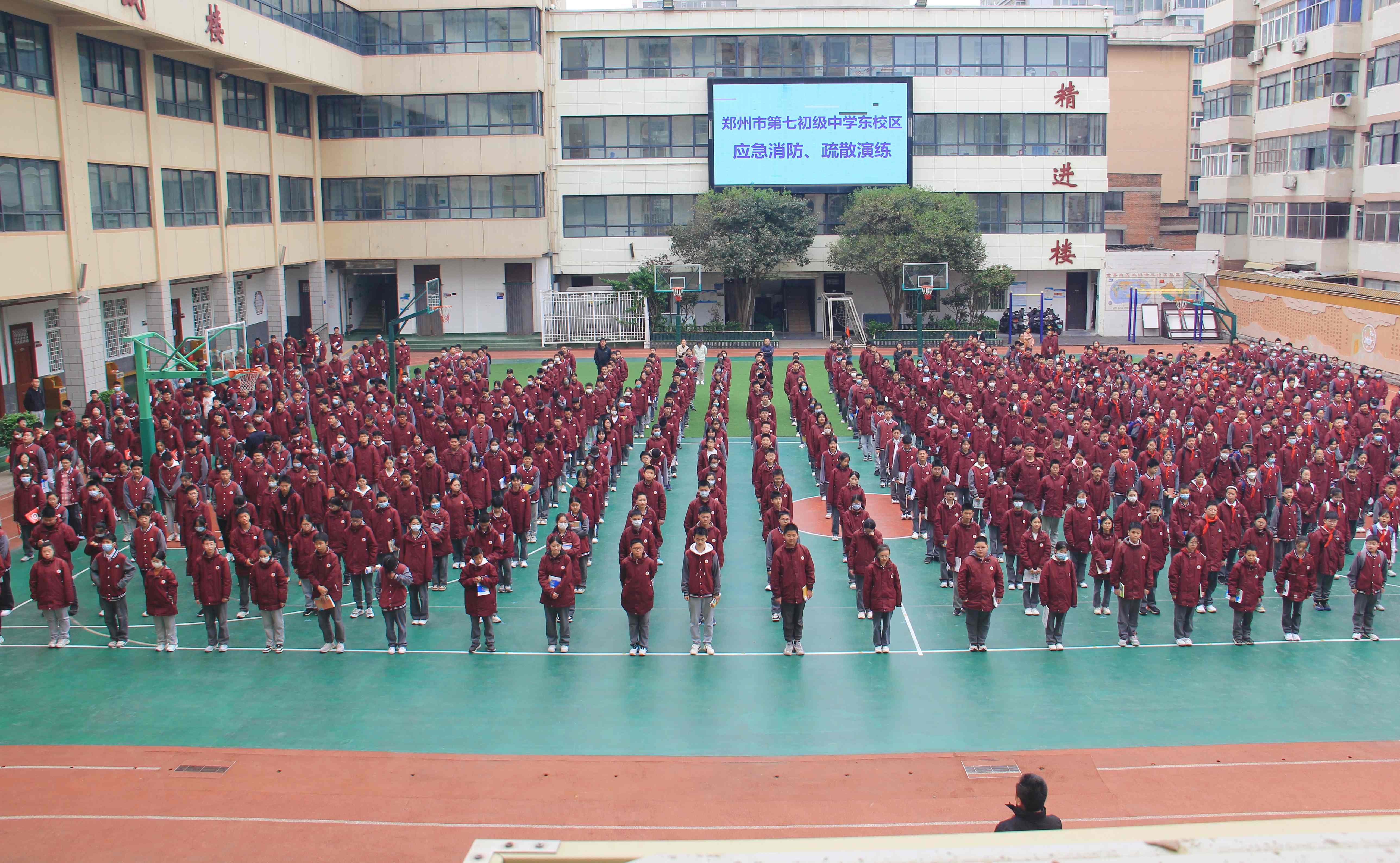 郑州七初东校区举行应急消防疏散演练