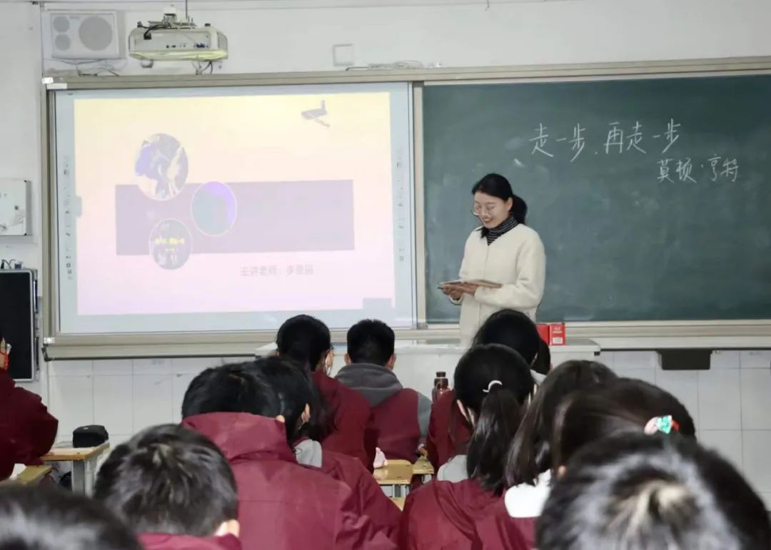 通过三个多月探索实践,李景丽老师逐渐摸索出了属于自己的“智慧”语文课堂模式。以《走一步,再走一步》一课为例,在教学开展过程中,李老师依据新课程标准,结合学生的身心发展规律和学情,有了更多的思考。“七年级学生刚步入中学,基本具备了认识自然和社会的能力,对人生有了初步的理解,他们想象丰富,思维活跃,但要从作者描述的悬崖脱险的故事中体悟哲理还是有一定难度的。”李老师作为课堂的引导者,基于智慧课堂,采用了多种策略组织教学环节,设计多种互动形式,激发学生主动思考和语言表达的能力,在充满乐趣的教学过程中,帮助学生体悟哲理,突破教学重难点,提升学生的自主探究能力。