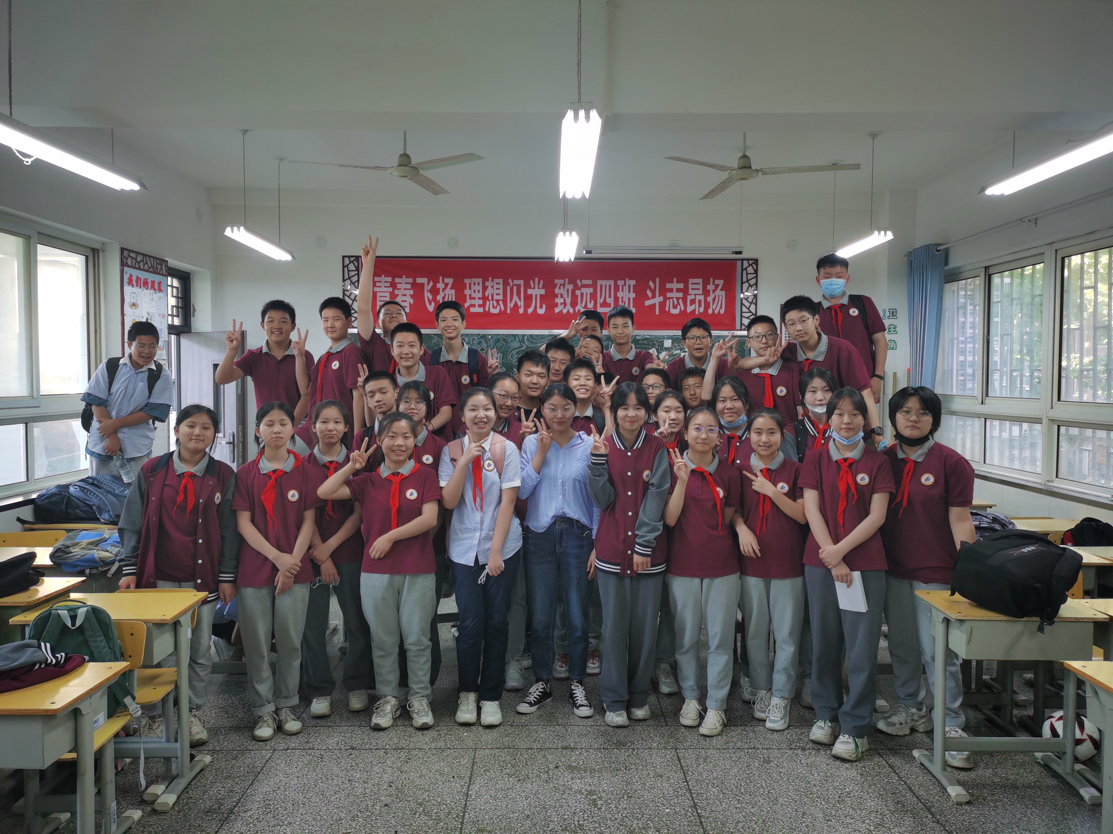 每一次集体活动,都是全班学生共同努力做一件事的机会,能增强班级凝聚力、荣誉感。从七年级的足球比赛开始,我动员学生积极参与。赛场队员毕竟有限,孩子们无法一一上场,无法参赛的孩子们便有了更重要的身份——班级后援团,为场上的选手摇旗呐喊,加油助威。当他们带着借来的鼓、锣、镲等“十八般武艺”出现在操场上,并在选手们胜利时,激情敲打;在选手们失利时,卖力鼓劲儿时。我明白“班集体”在这一刻具象化了。我们是真真切切紧密团结的整体。当然,在一次次活动中,也增进了师生情谊,让我和学生建立了较深厚的感情基础,这样在日后引导教育时,我的话,学生也乐于接受、愿意执行。