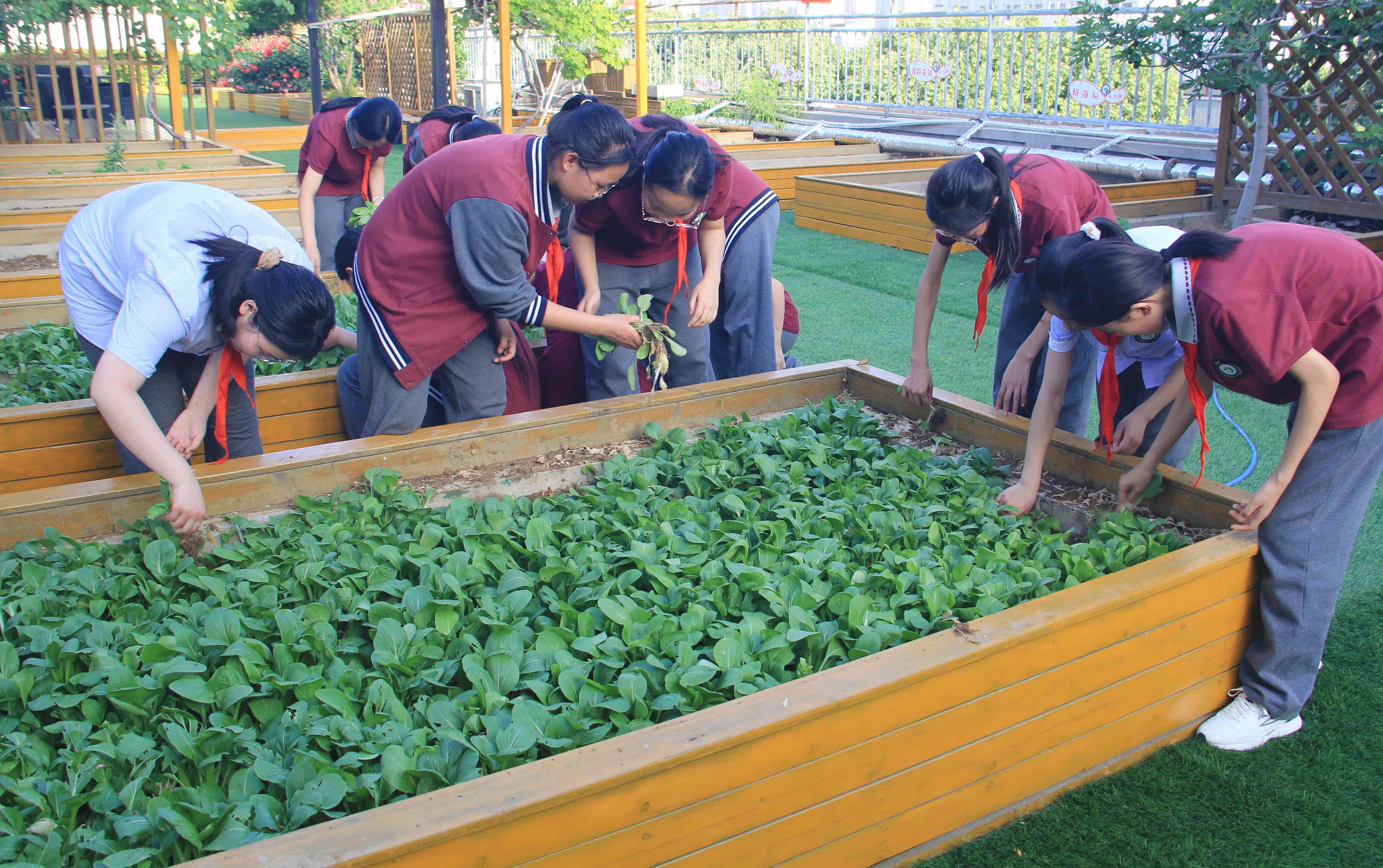 茼蒿、油麦菜、上海青……青绿色的劳动果实见证了同学们曾经洒下的汗水,他们要把这份沉沉甸甸的果实采摘下来送给无私陪伴着他们的老师……