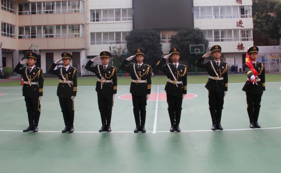 为加强爱国主义教育,增强师生的国家观念,使升国旗仪式进一步标准化、规范化,郑州49中新一届七年级国旗班正式成立,使每周的升旗仪式增添了一抹独特的军绿色。
