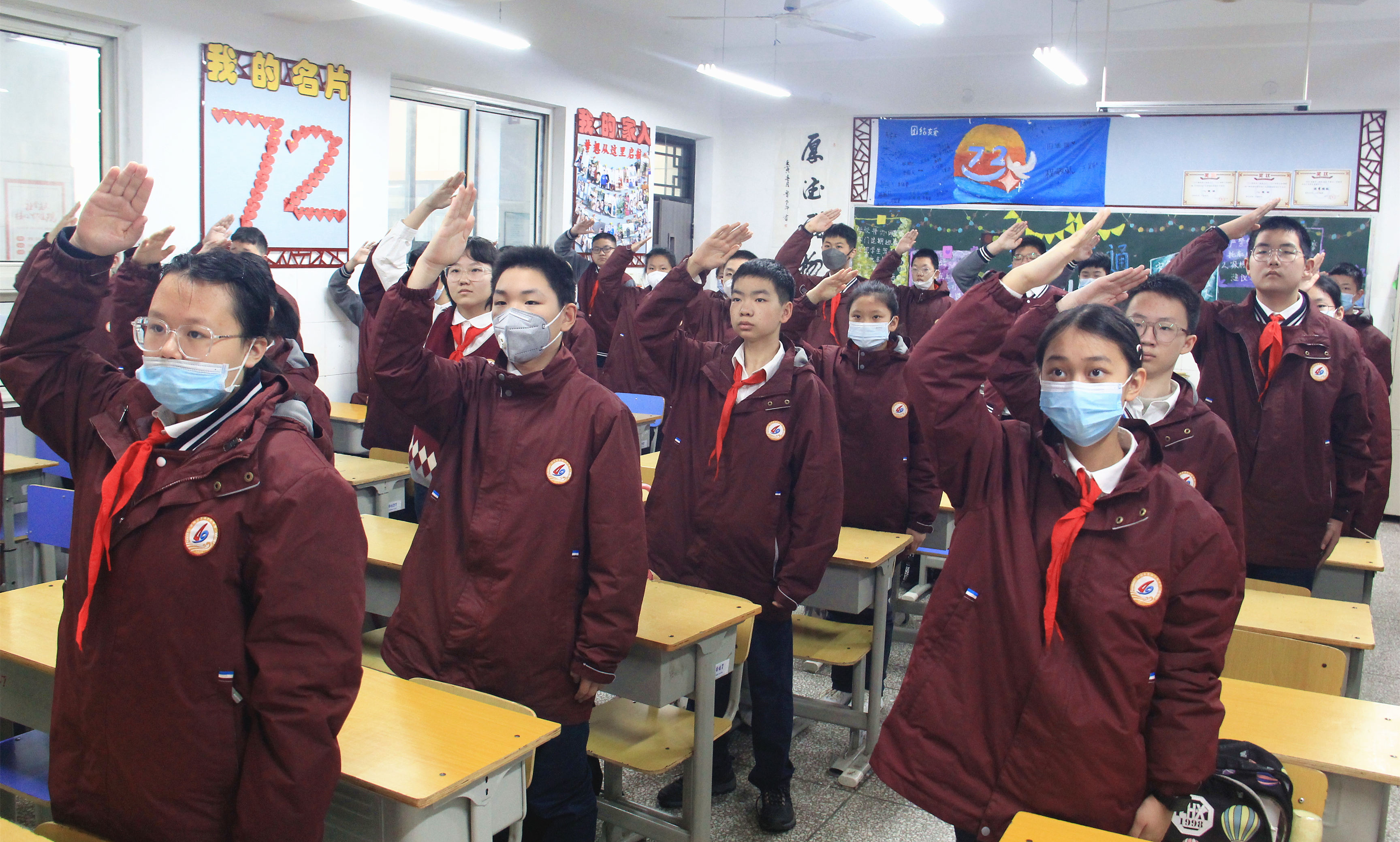 郑州49中举行室内升旗仪式