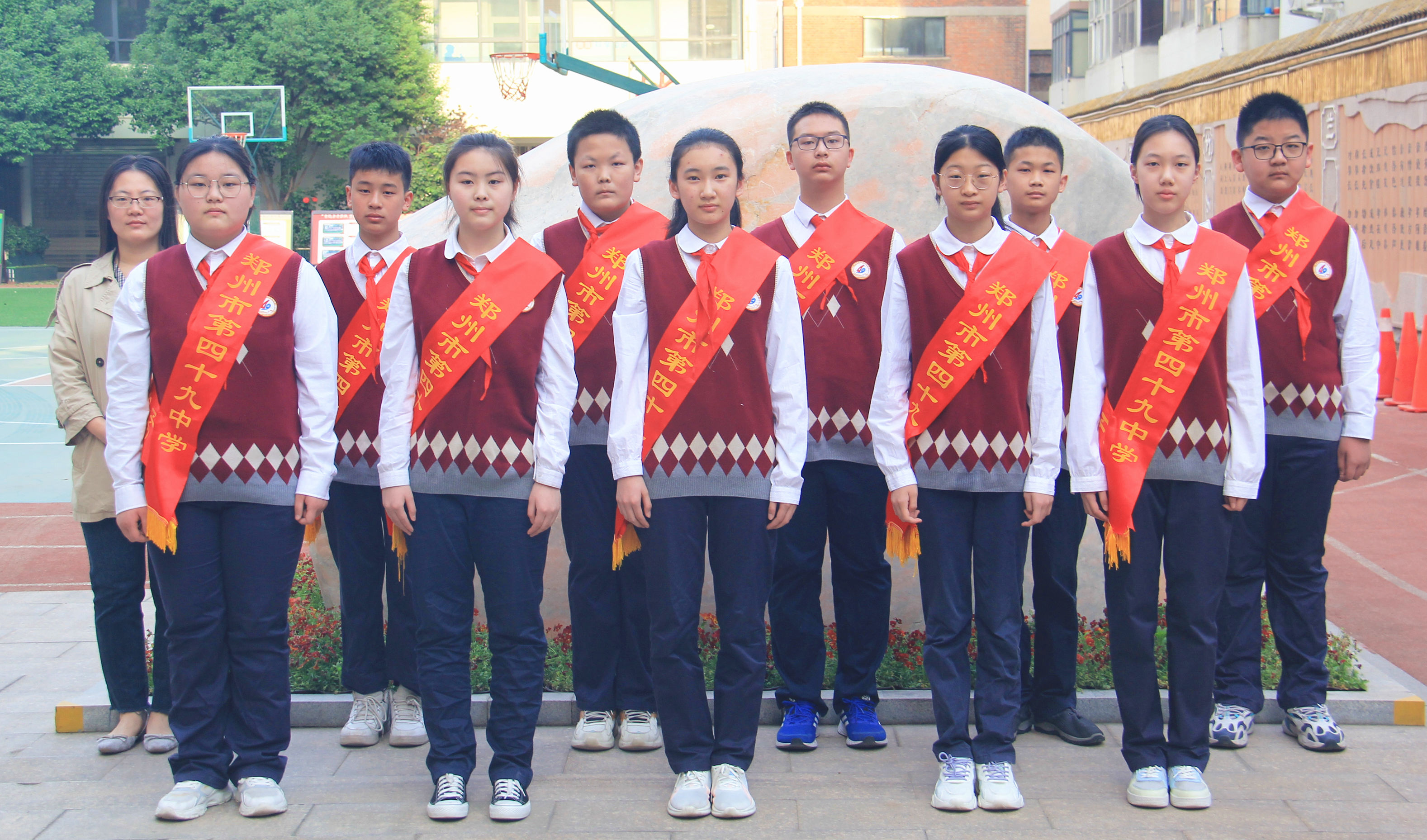 郑州49中举行室外升旗仪式