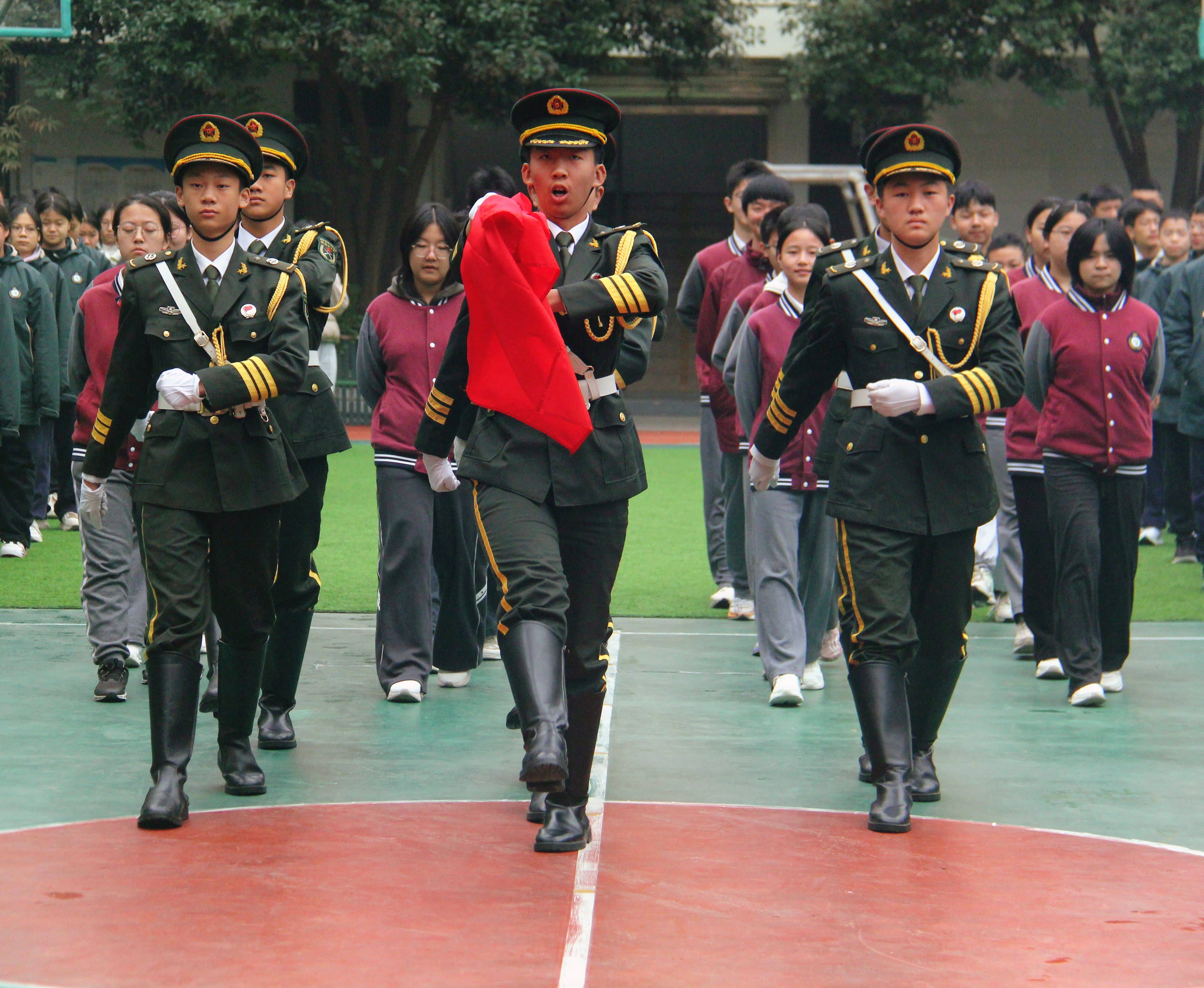 校国旗班与昂扬六班学生代表执行升旗