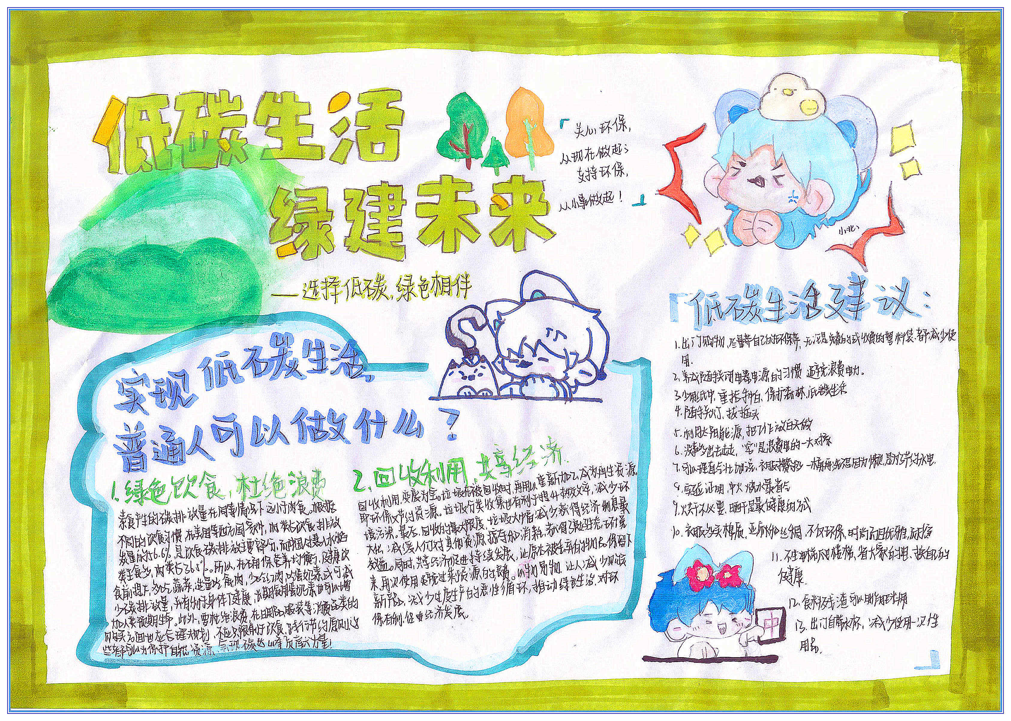 低碳生活是一种方式,更是一种态度,希望我们每一个人都能从点滴做起,从身边做起,珍惜资源,保护地球,真正实现“人与自然和谐共生”的美好愿景。