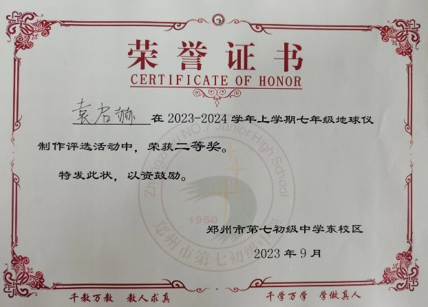 【学生作品】郑州市第七初级中学东校区开展“地球仪手工制作”活动