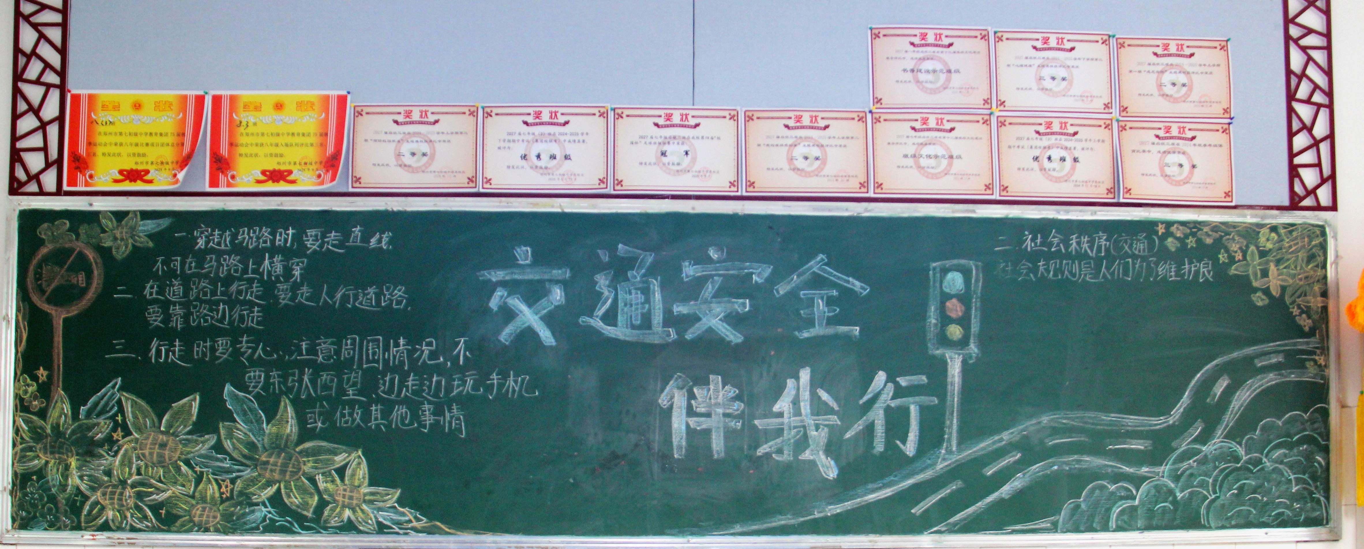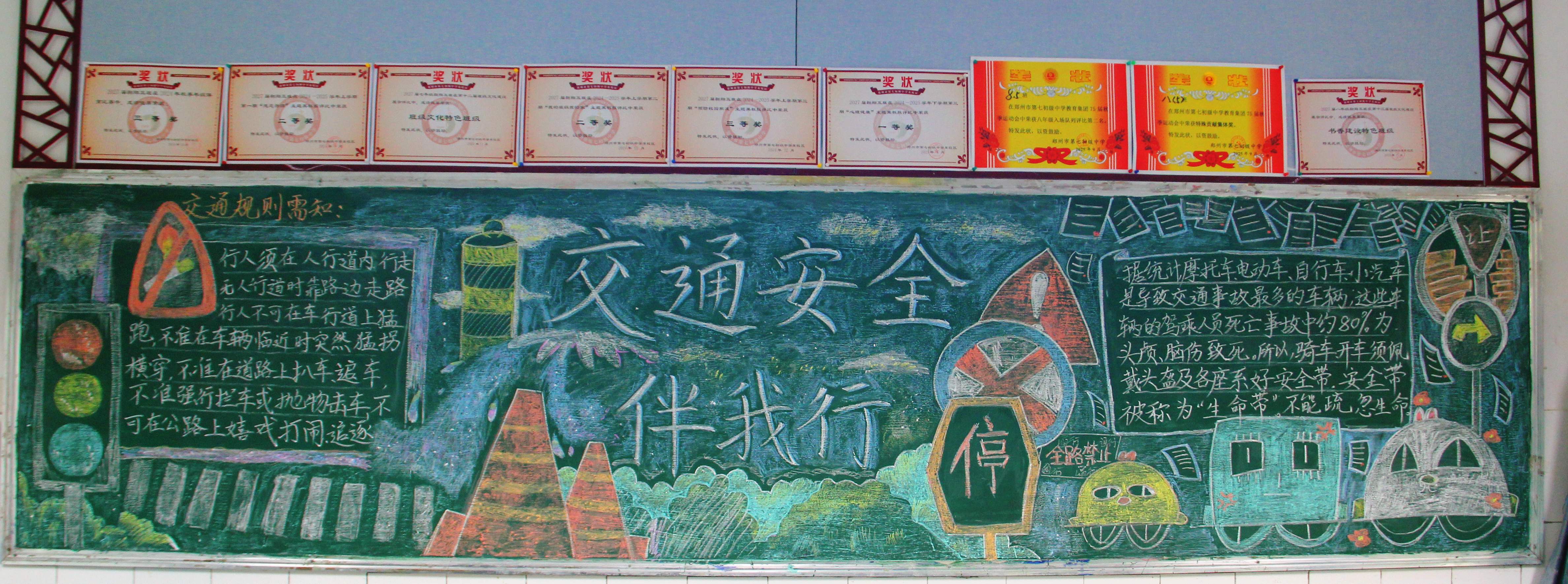 【主题板报】郑州七初东校区开展“交通安全 身边榜样”主题黑板报展评