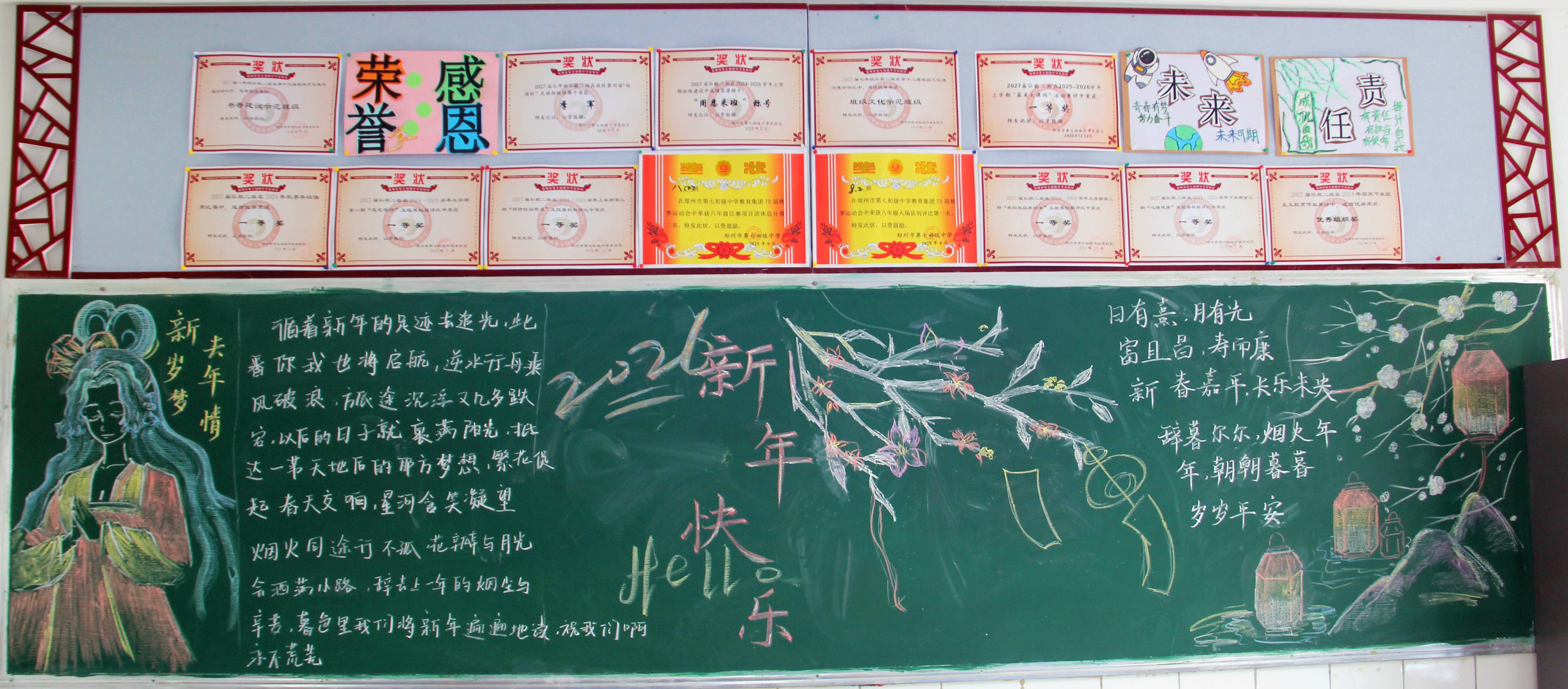 【主题板报】郑州七初东校区开展“惜时 迎新”主题黑板报评选活动