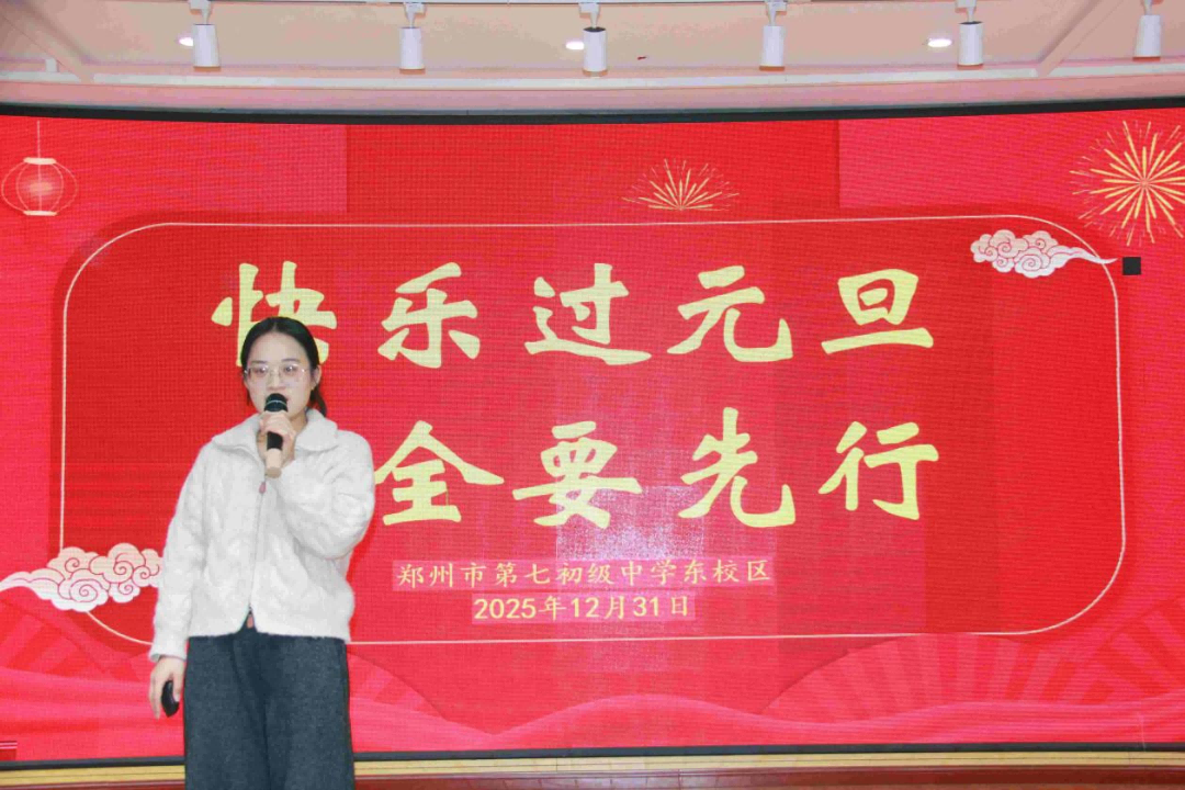 汇演尾声,七年级管委会周艺文老师为全体同学送上元旦安全提醒,从出行安全、居家安全、消防安全等方面细致叮嘱,为同学们度过一个平安快乐的假期保驾护航。
