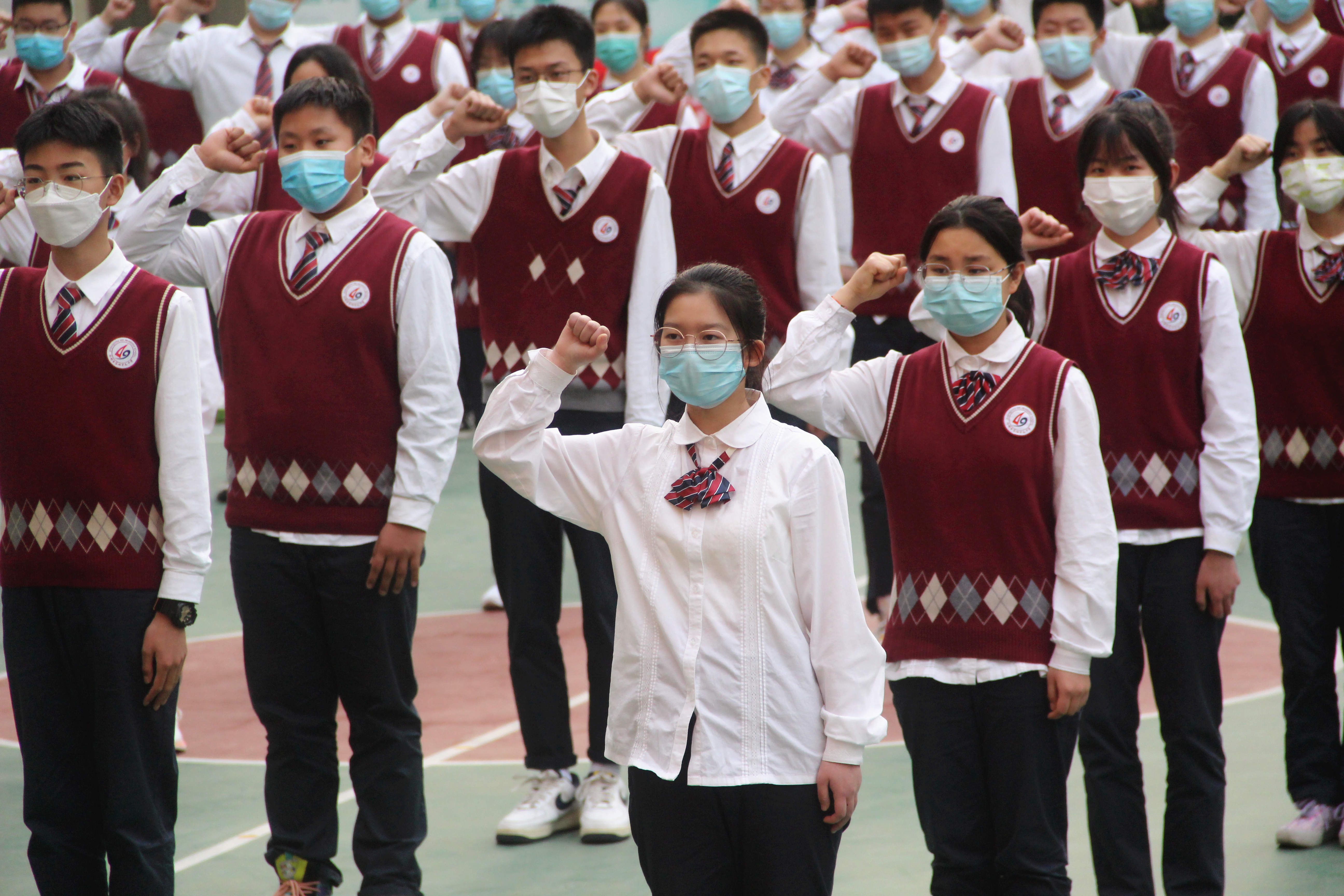 最后,年级组长彭建杰带领老师信心百倍地宣誓,学生代表带领全体同学用最高昂的气势喊出百日冲刺誓言,展现出他们青春的豪气,无畏艰险的勇气和坚定不移的志气。相信2022届全体师生将以脚踏实地的奋斗,铸就49中新的辉煌!