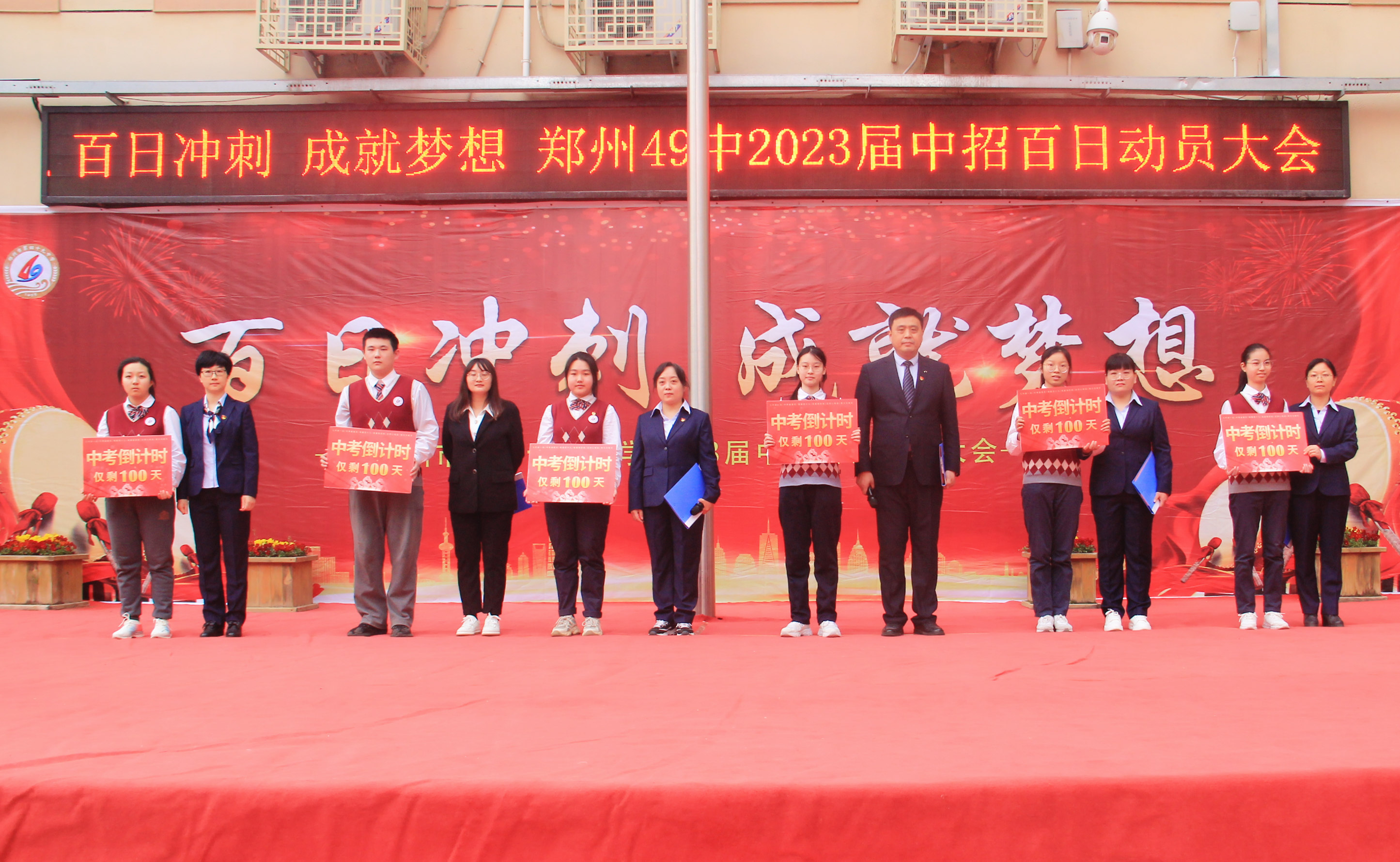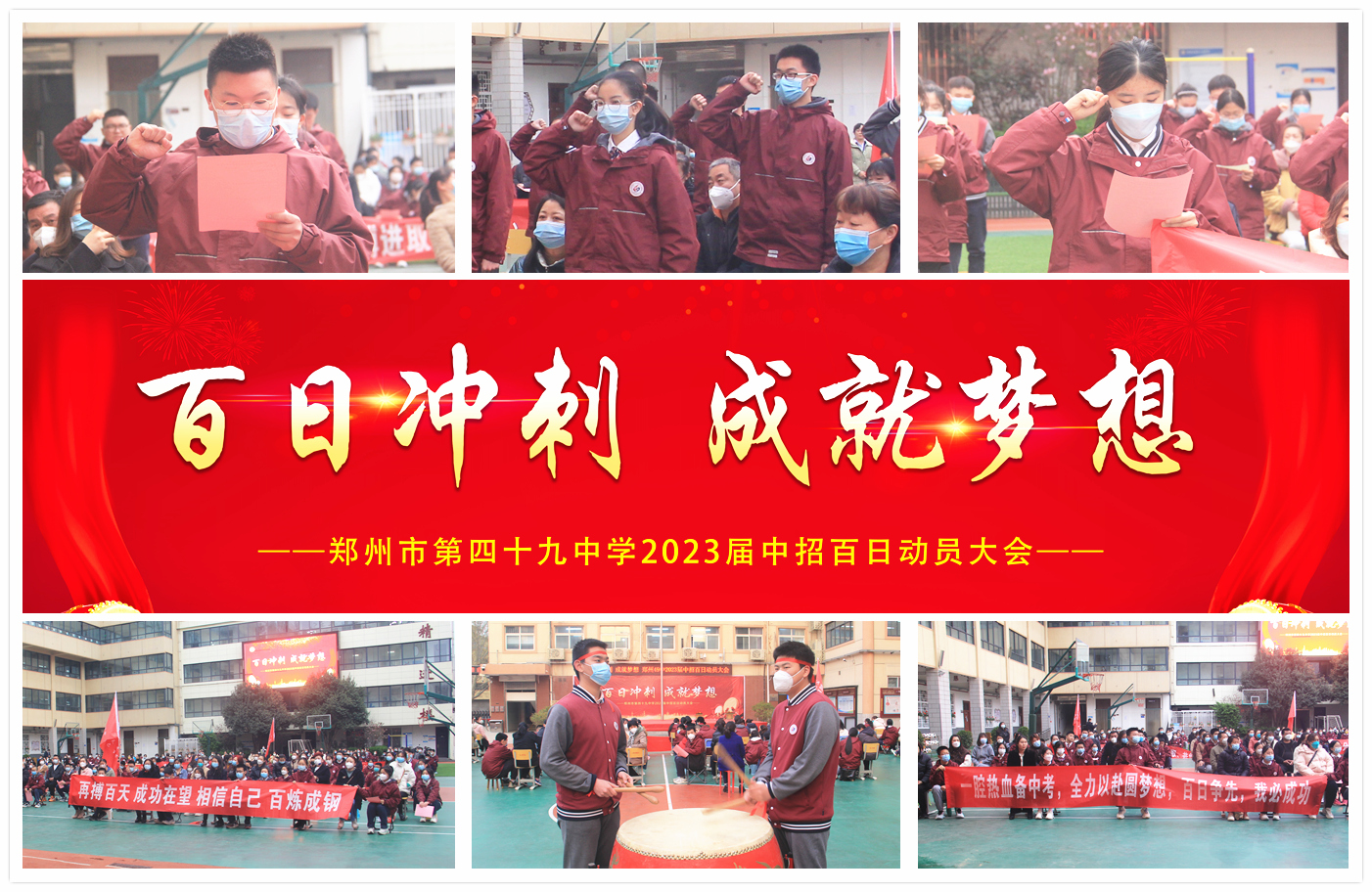 为更好地激发九年级学子的拼搏斗志,以积极的状态迎接中考,3月20日,郑州49中举行“百日冲刺 成就梦想”2023届中考百日动员大会。