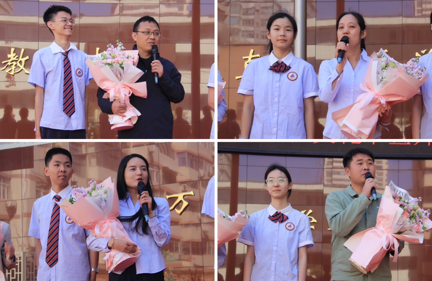 九年级学生为班主任献上鲜花
