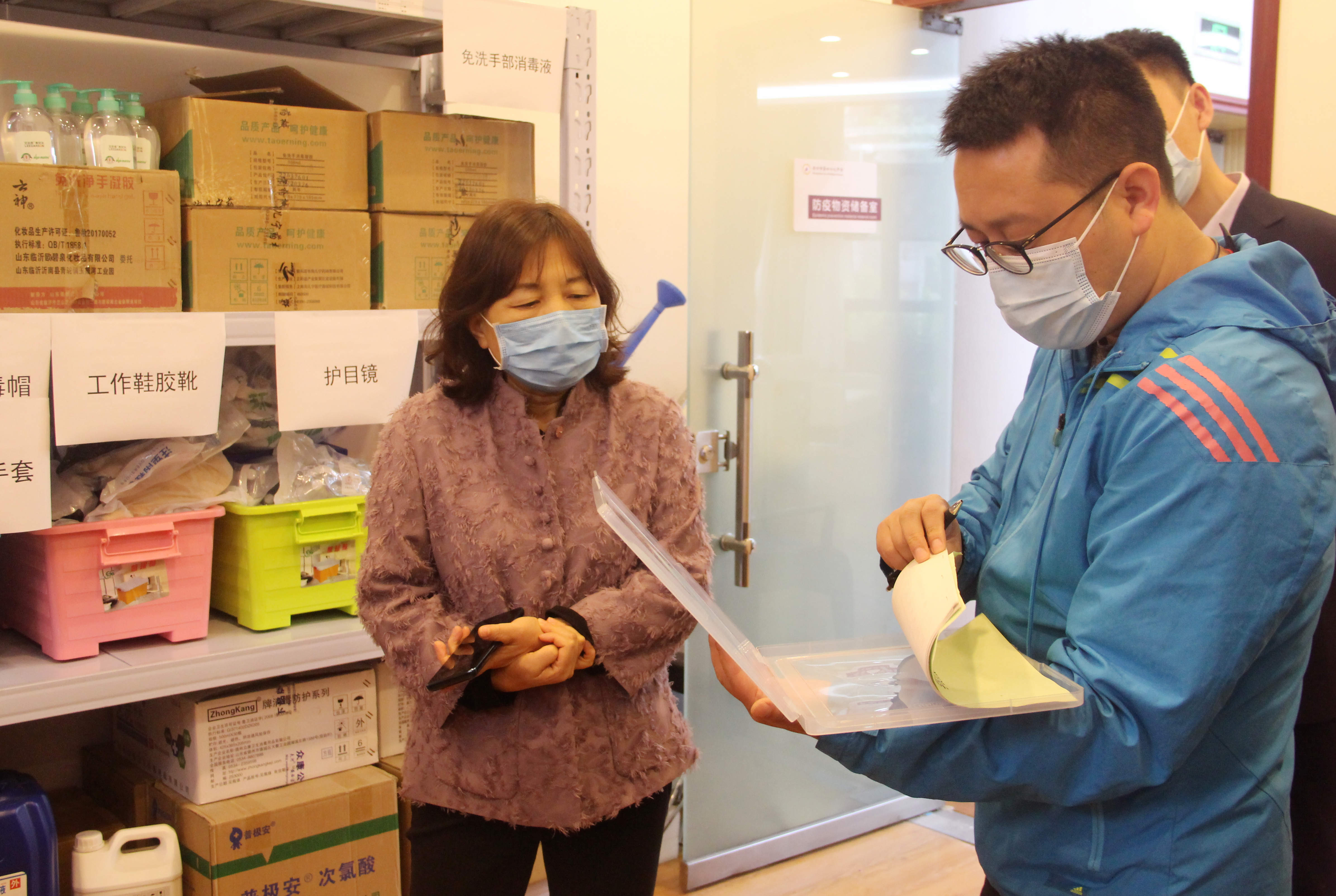 校领导检查防疫物资储备情况