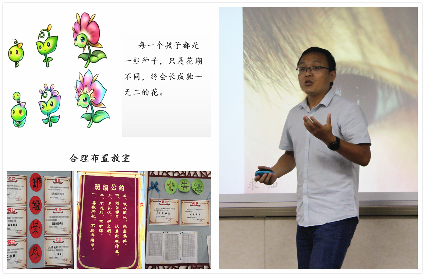 政教主任徐光辉,解读了缔造博爱教室“1+1+N”行动策略。总结了过去一年的班主任工作,学习李镇西老师《给教师的36条建议》,从有快乐、有收获、有故事、有成长等方面丰富班级文化,开展班级建设。