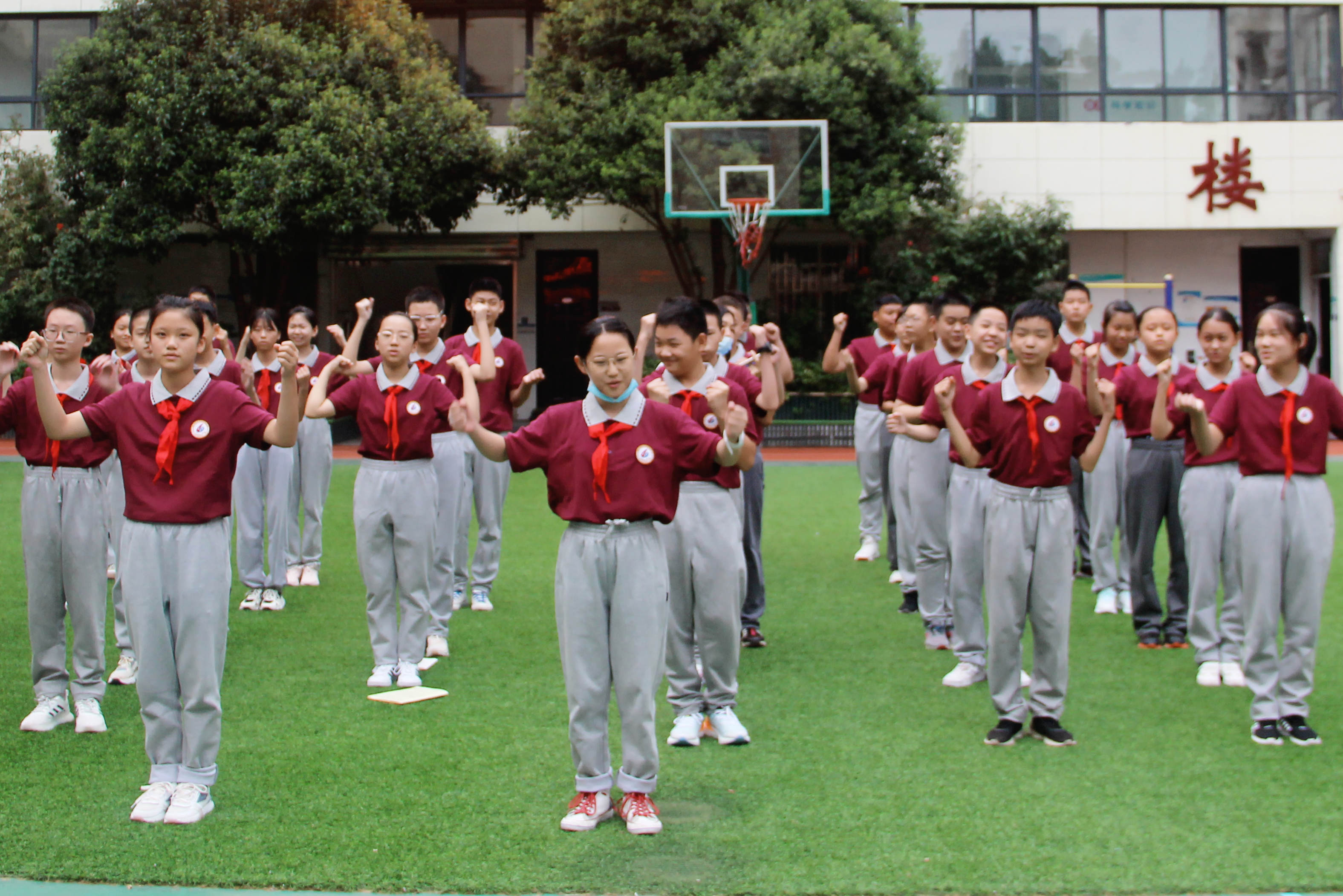 绿茵场上,2022级新生精神饱满,同学们在班主任老师的带领下,团结协作、分工明确,分别展示了班名、班徽、班训、班级口号以及班歌,操场上响起阵阵掌声。