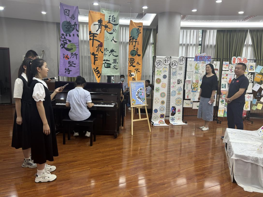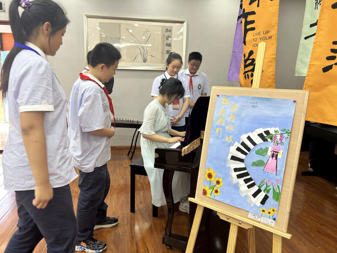 云天收夏色,木叶落秋声,九月我们与美好的艺术不期而遇。我校为全面落实立德树人根本任务,践行“五育并举,全面育人”的教育理念,营造积极向上、团结和谐的校园文化氛围,9月2日开始,为期三天的“逐光而行 艺彩绽放”艺术沙龙活动在郑州市第七初级中学东校区顺利开展。此次活动是视与听觉的盛宴,是妙笔丹青的画作与珠落玉盘的音乐的相遇,我们欢聚于此,共同感受艺术的魅力。