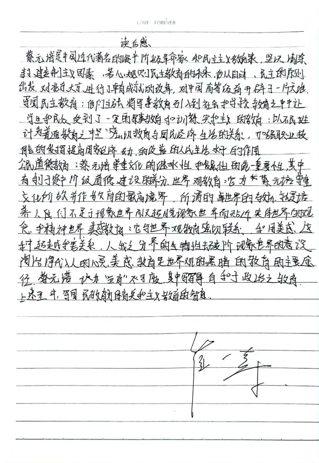 最后,我想说,蔡元培先生不仅是中国教育史上的巨匠,更是我们所有人学习的楷模。他的事迹和精神激励我要不断前行,为社会的进步和人类的文明贡献自己的力量。