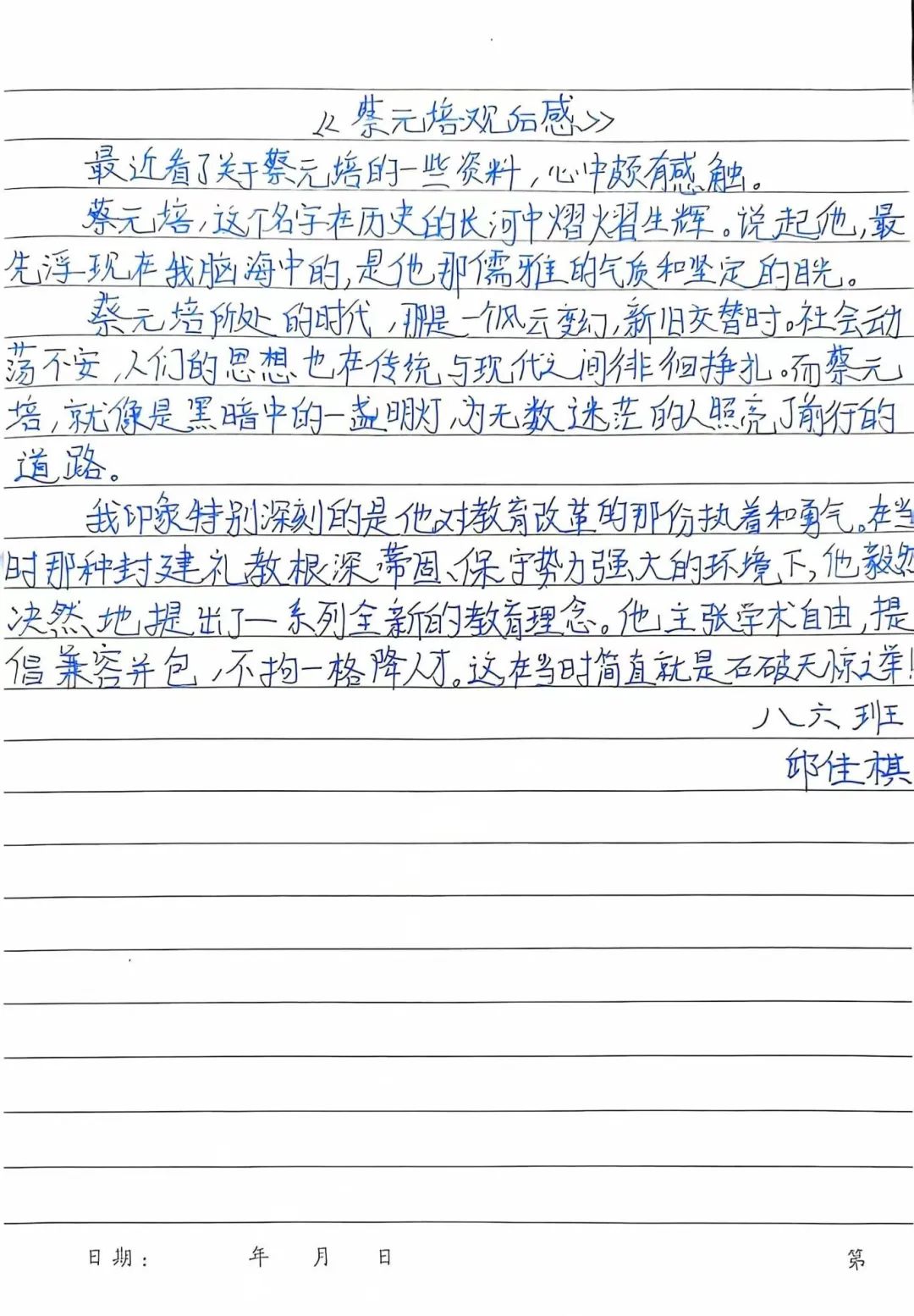 八(6)班邱佳棋观《大师》蔡元培有感