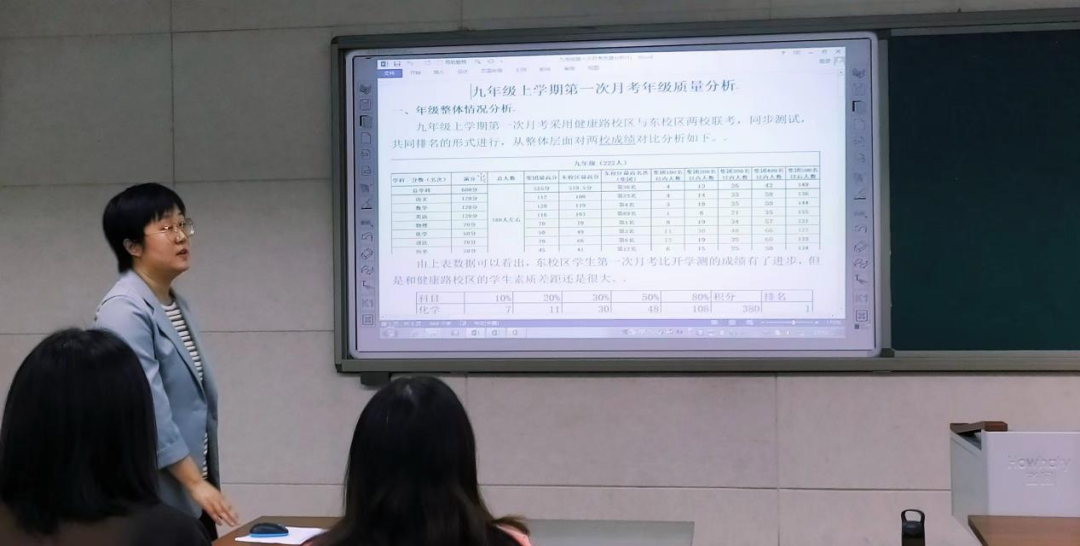 七初东校区九年级全体教师在录播教室参加质量分析会