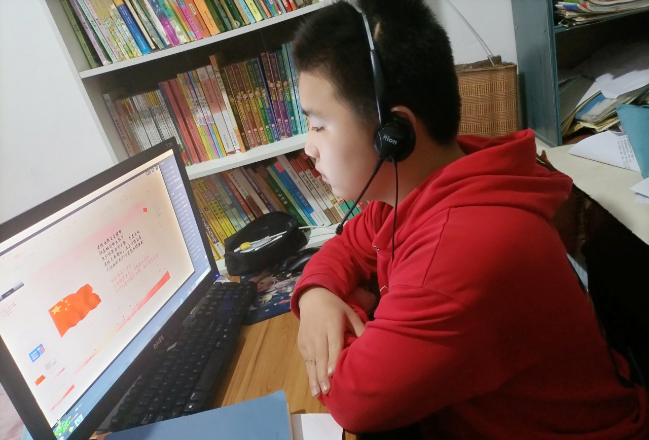 班主任与学生进行视频会议